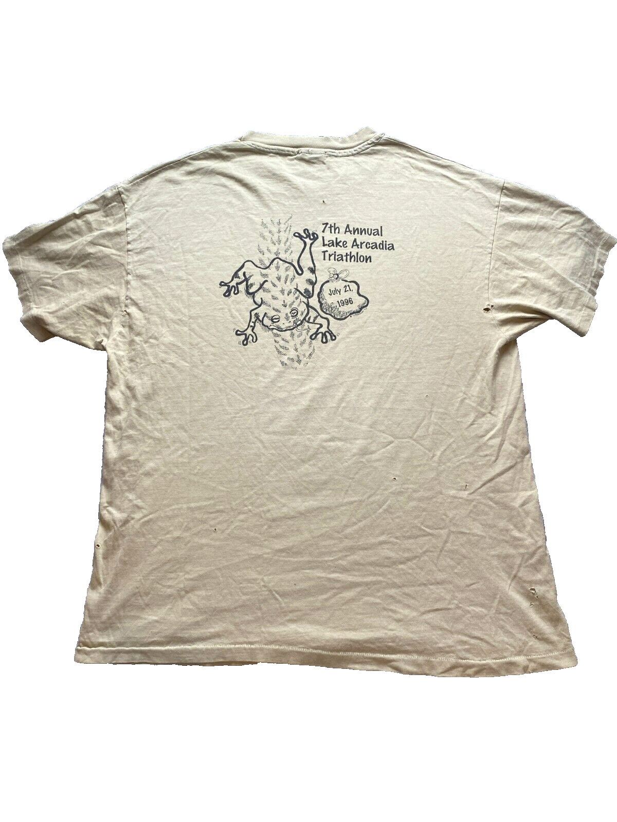 VTG Lake Arcadia Triathlon Shirt Adult Extra Large Khaki Single Stitch Frog 90s