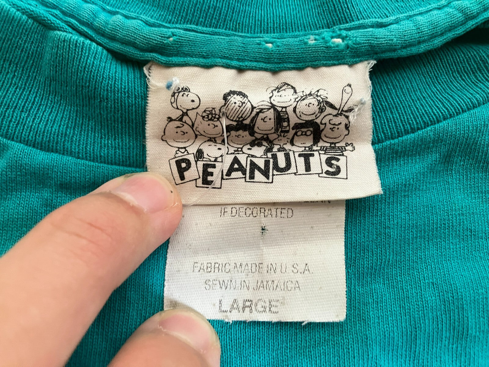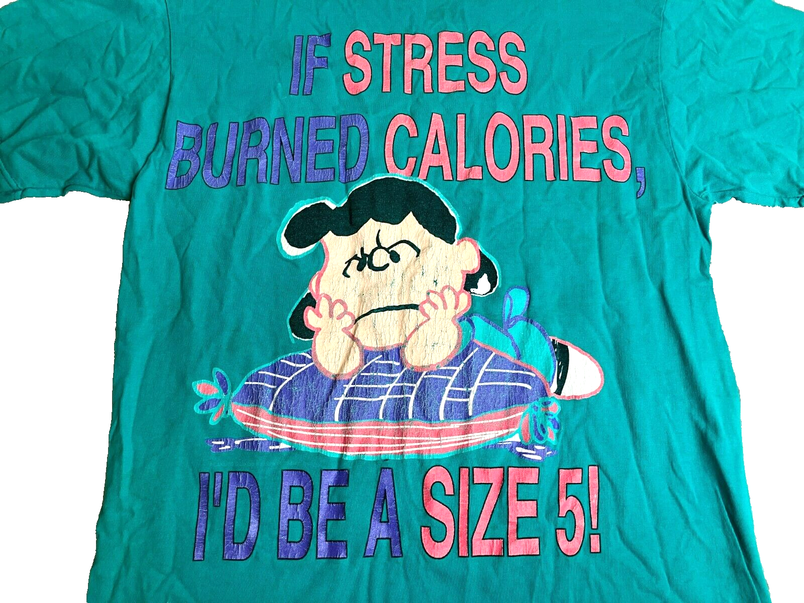 VTG Peanuts Shirt Womens Large Teal Green Lucy Charlie Brown Burned Calories 80s