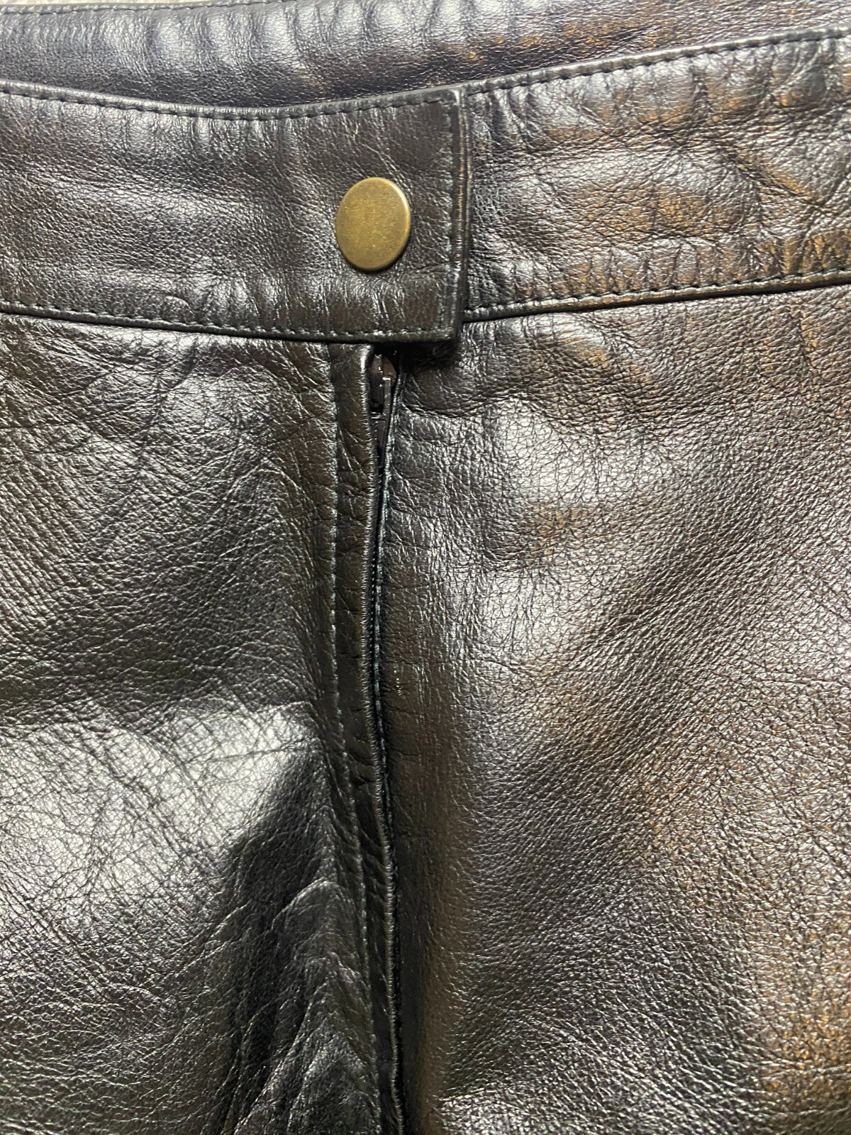 VTG Tannery West Skirt Womens 8 (30x20.5) Black Leather Satin A-Line Back Zip