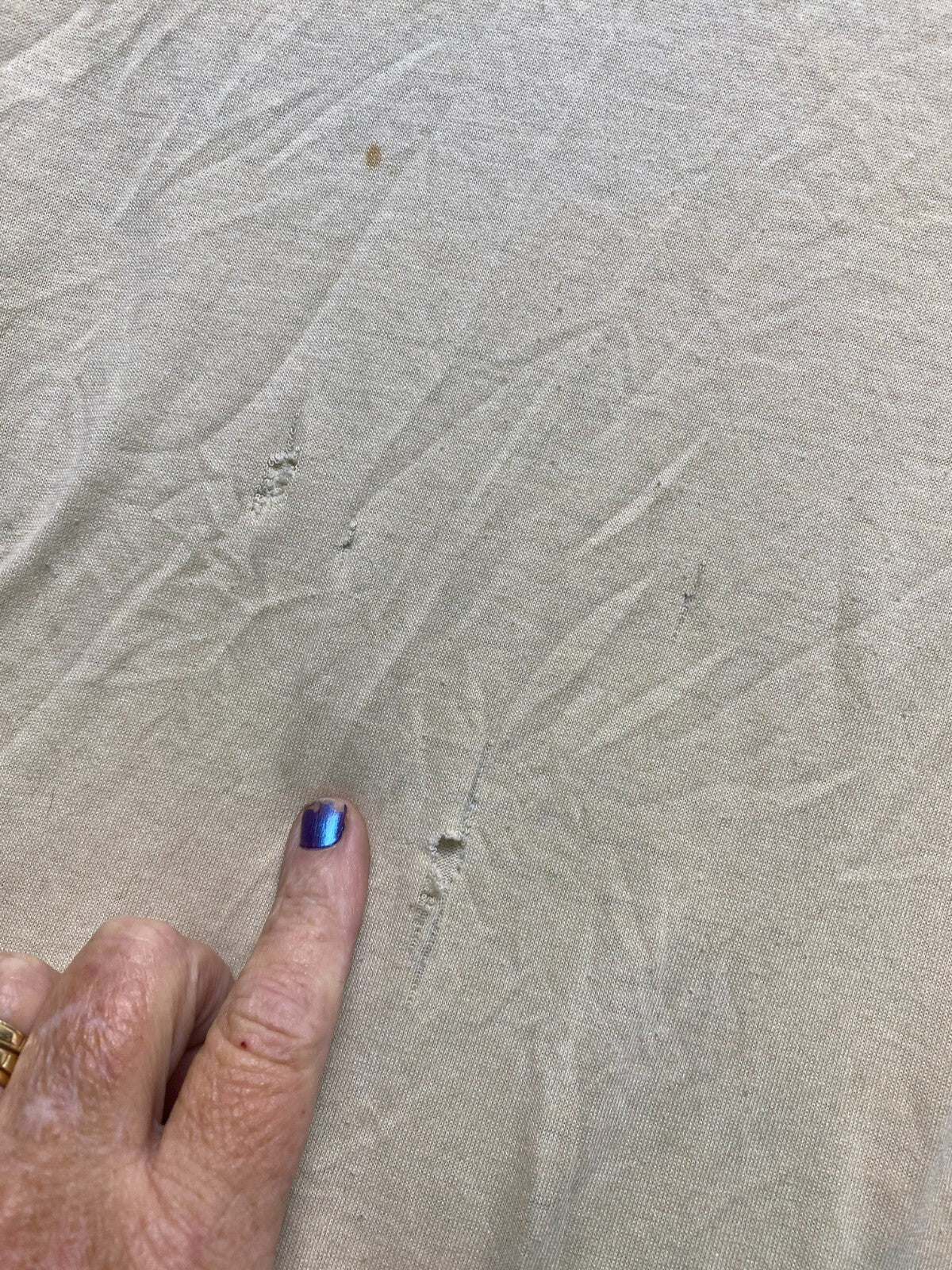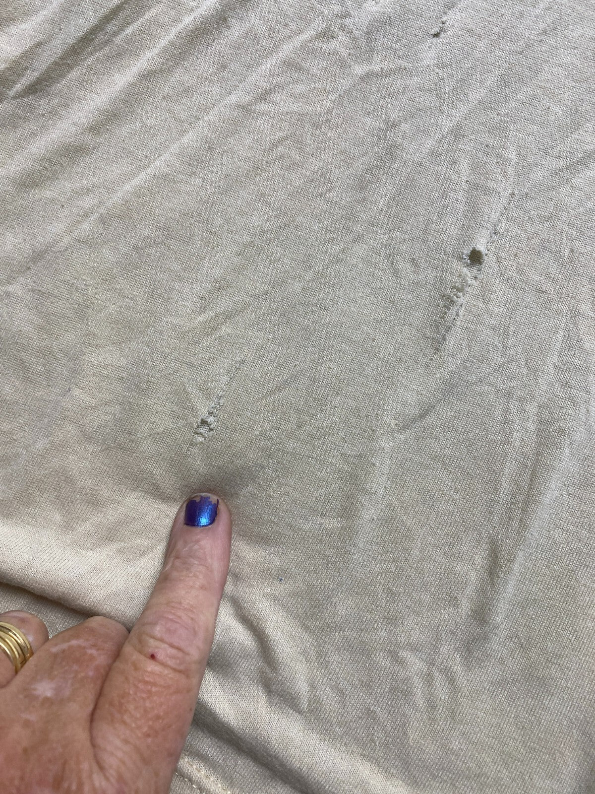If we noticed any damage to this item, stains, holes, etc... it will be shown in photos or noted in the description or title on this listing.