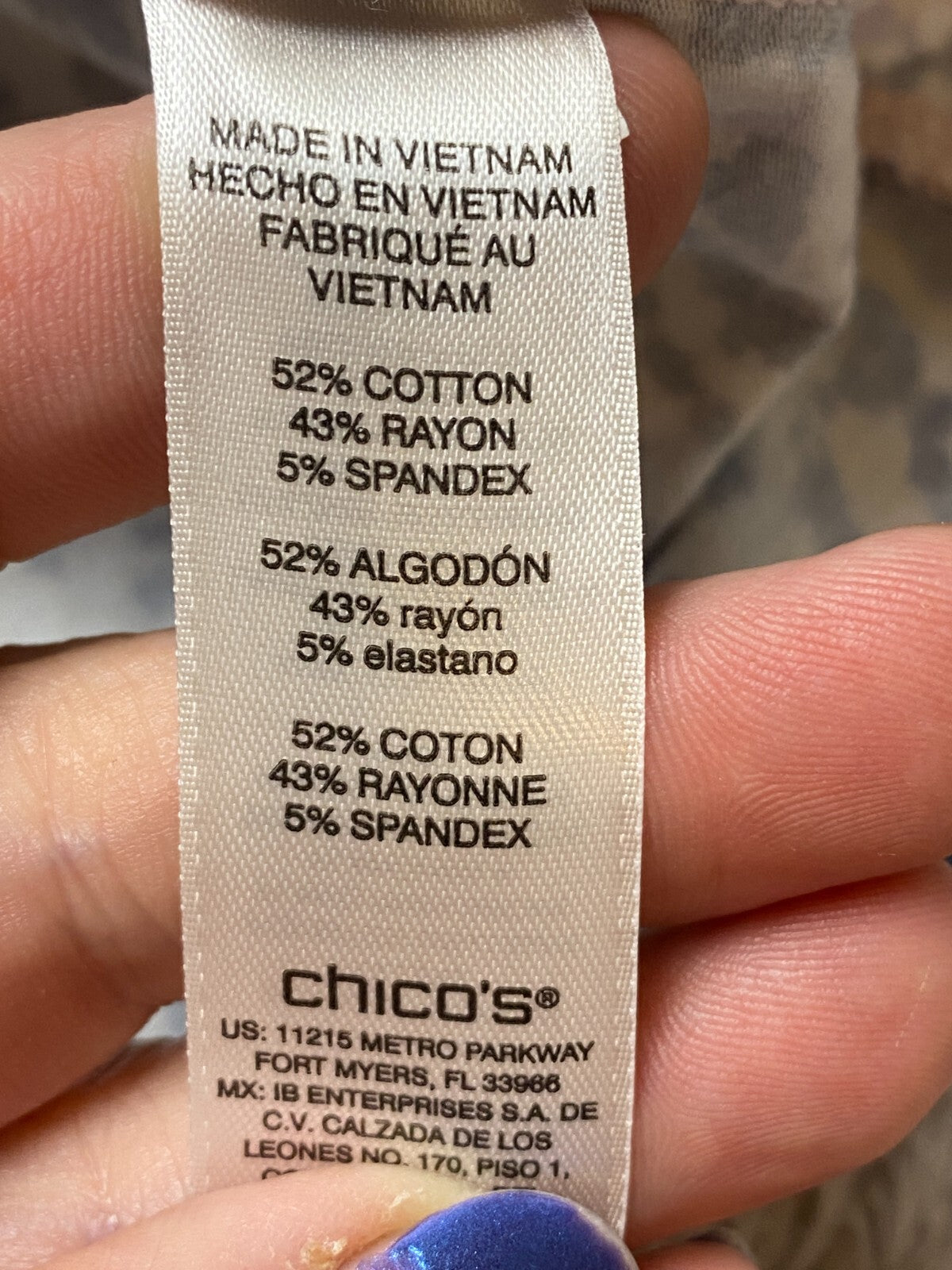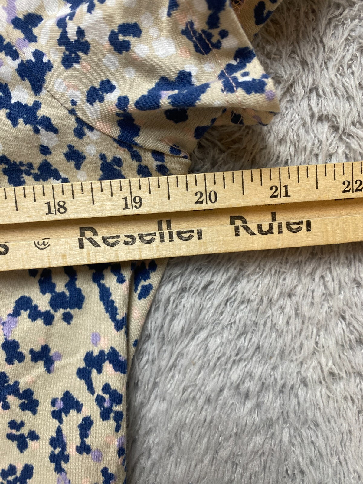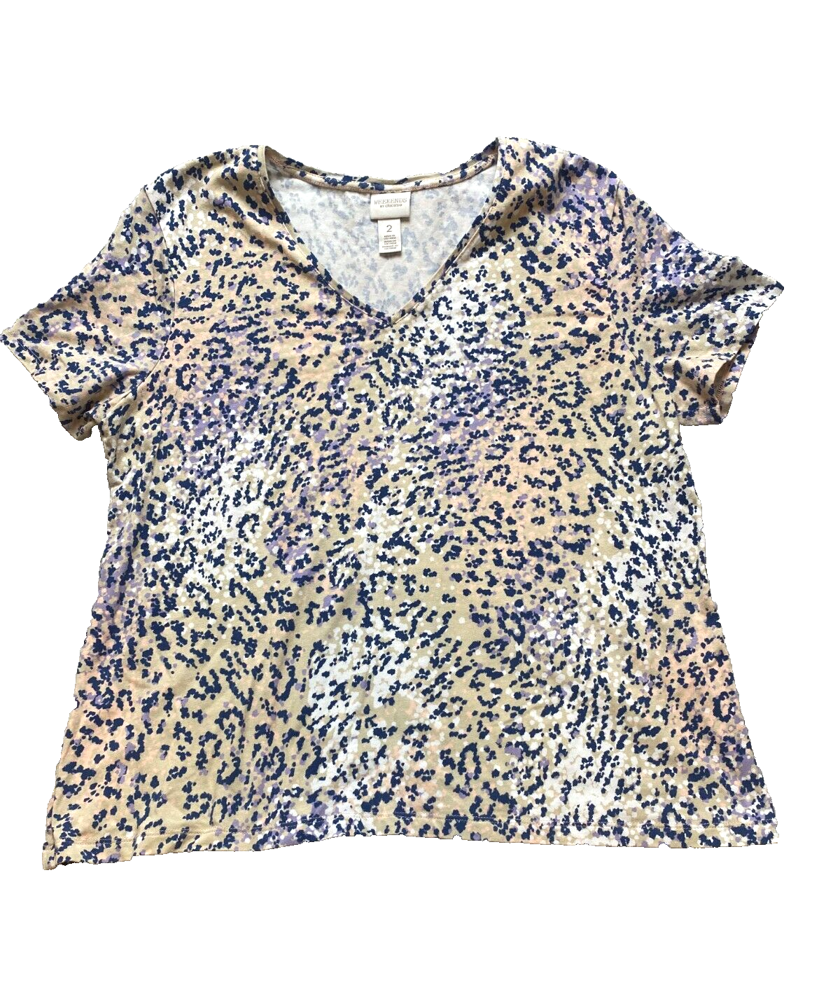 Weekends by Chico's Shirt Womens 2 Taupe Lavender Boxy Rayon Spandex Leopard AOP