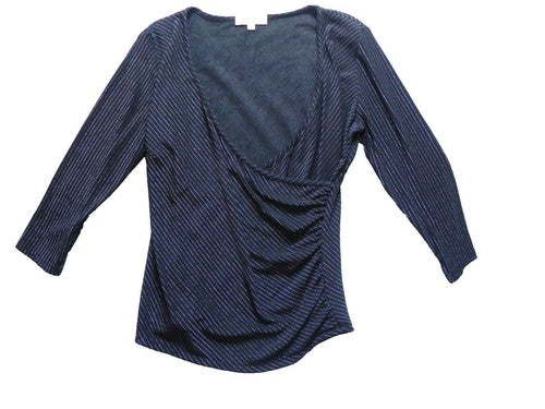 White House Black Market Shirt Womens Large Pinstripe Wrap Blouse Casual Ladies