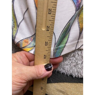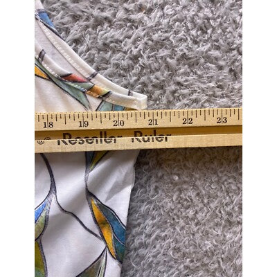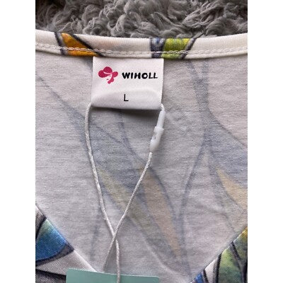 Keywords: Wiholl, tank top, sleeveless top, v-neck blouse, leaf print, multicolor top, casual top, women's top, summer top, blouse, size L, polyester blend, new with tags