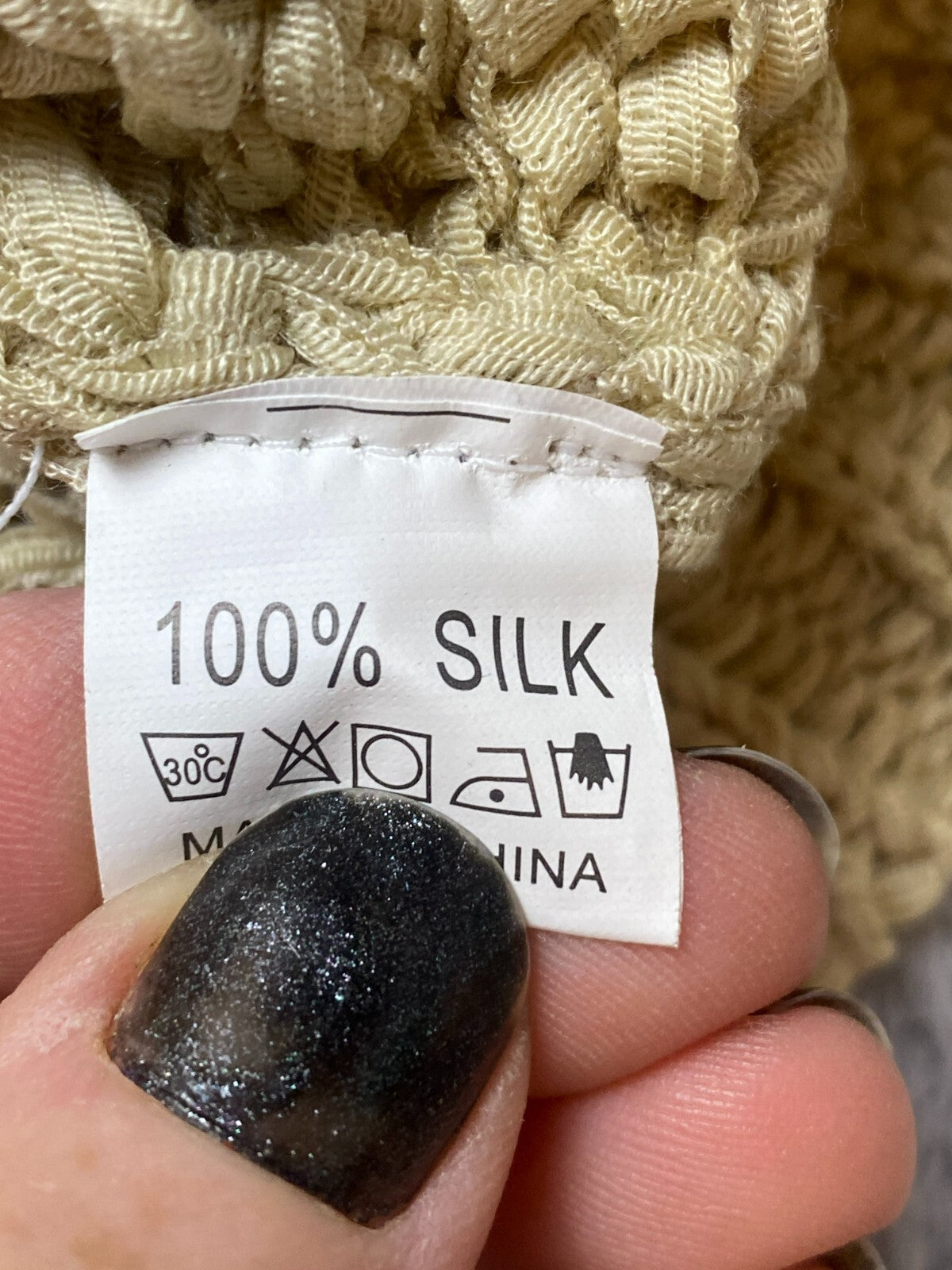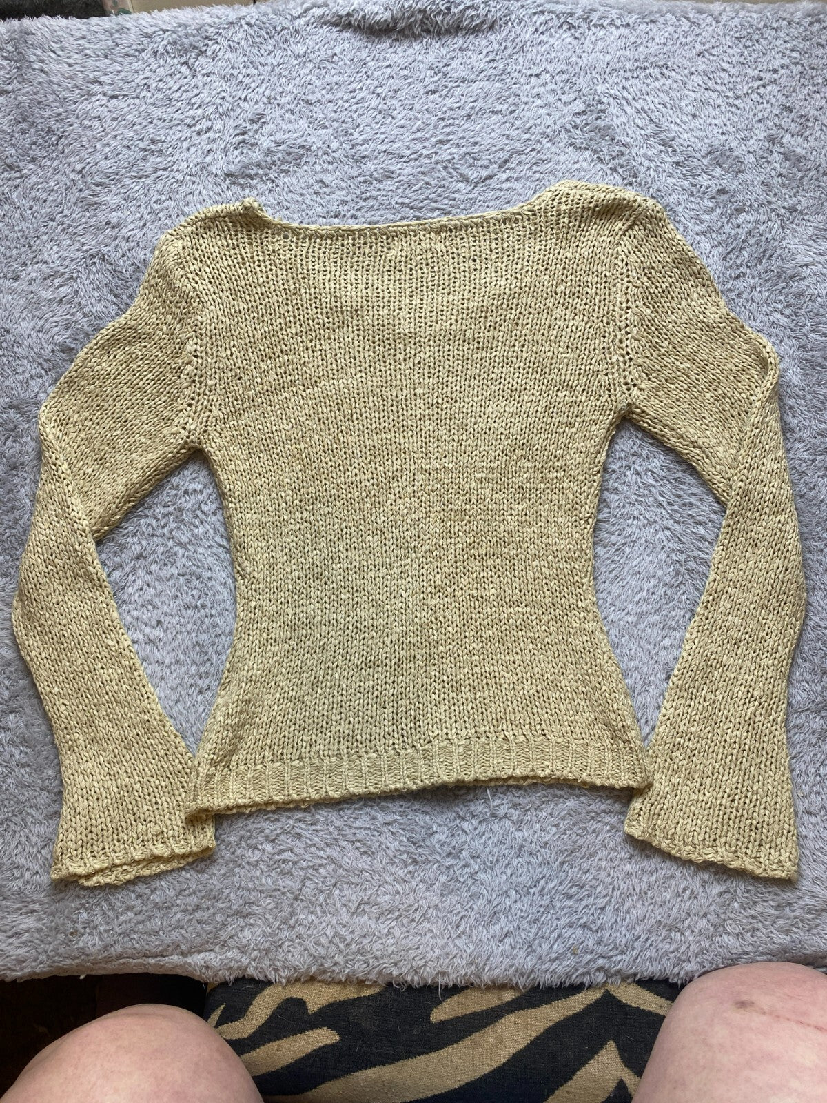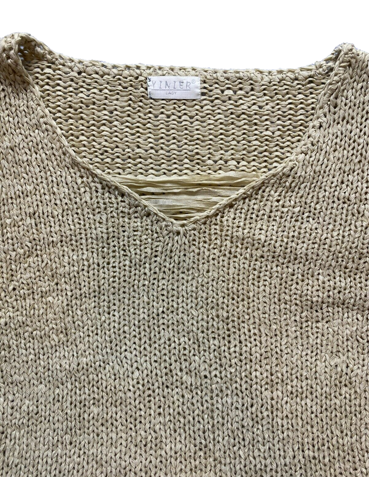 Yinier Sweater Womens Small Beige 100% Silk Open Knit Flared Sleeve Ladies