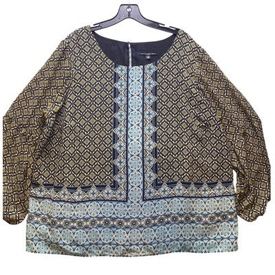 Keywords: Zac & Rachel, blouse, top, bohemian, boho, print, long sleeve, plus size, 2X, lightweight, womens, ladies, casual, dressy