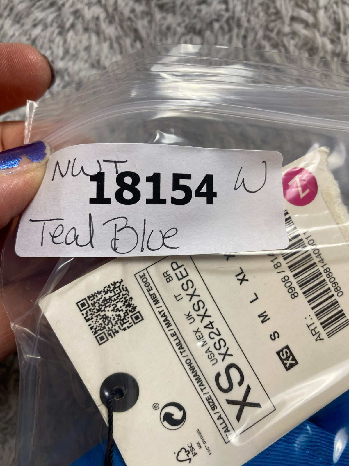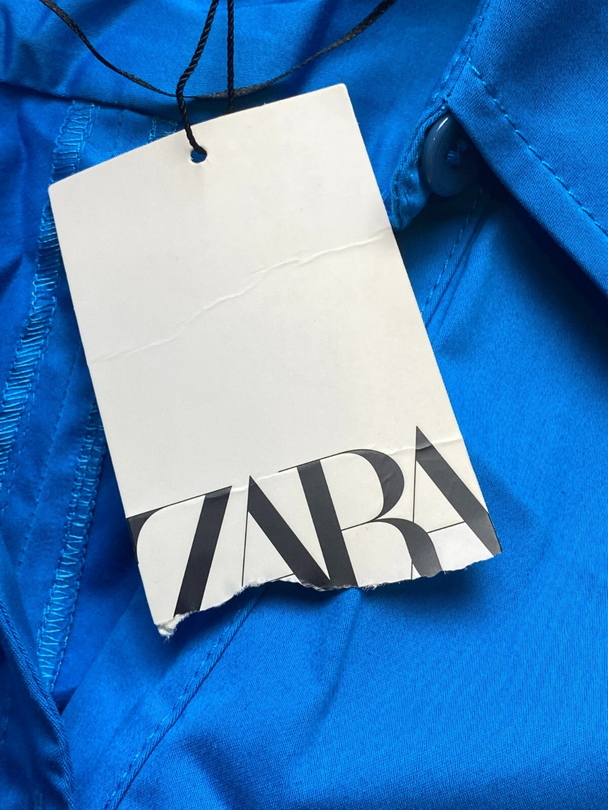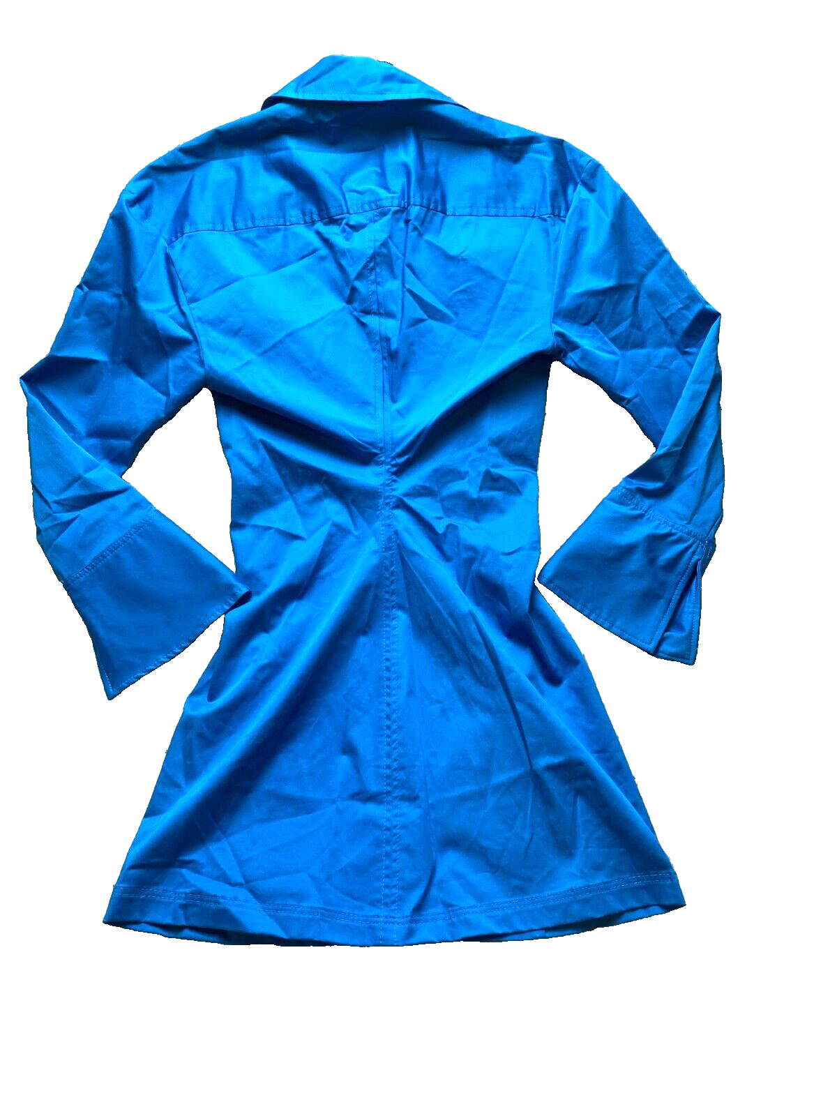 ZARA Dress Womens Extra Small Teal Blue Button Down Collared Shirt Stretch NWT