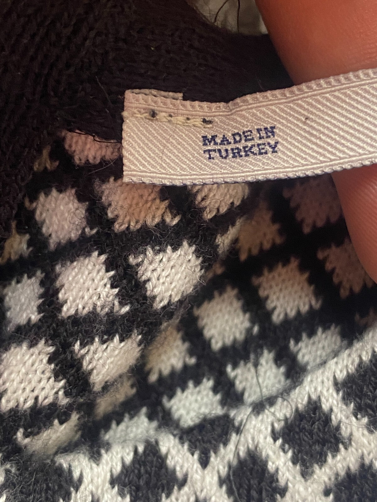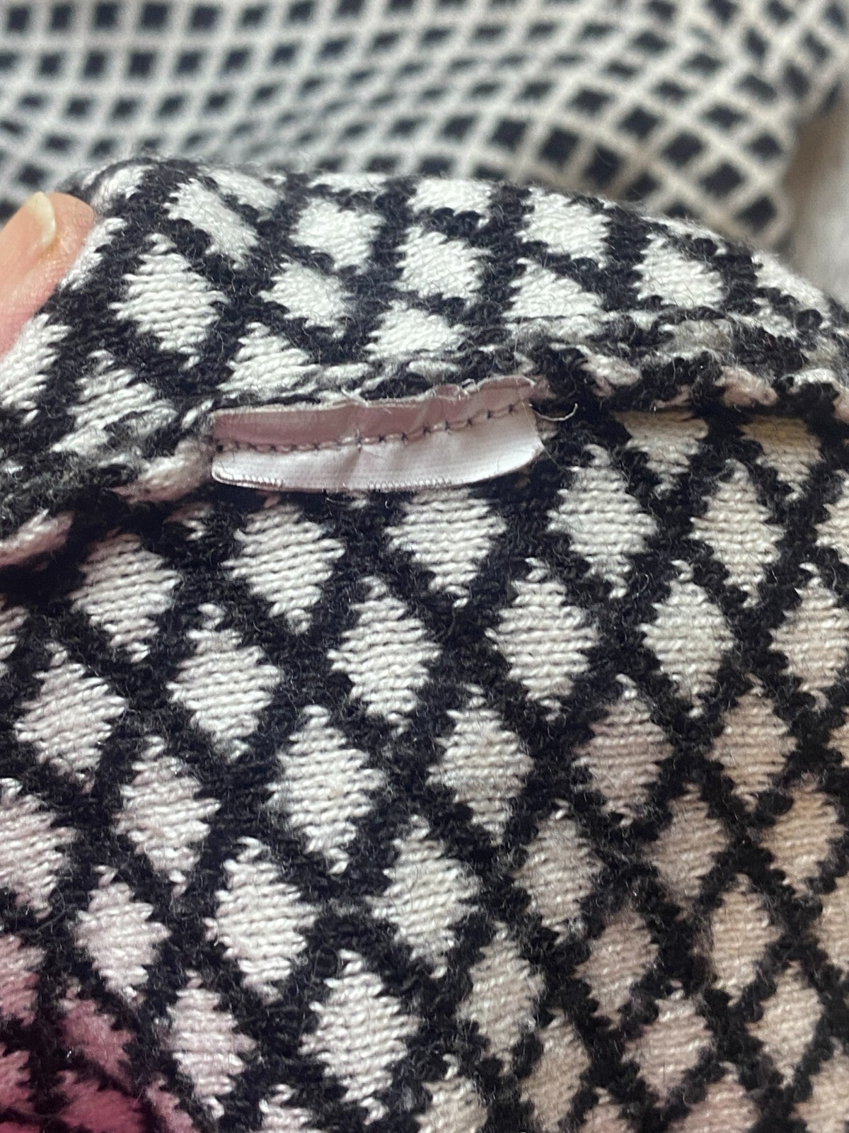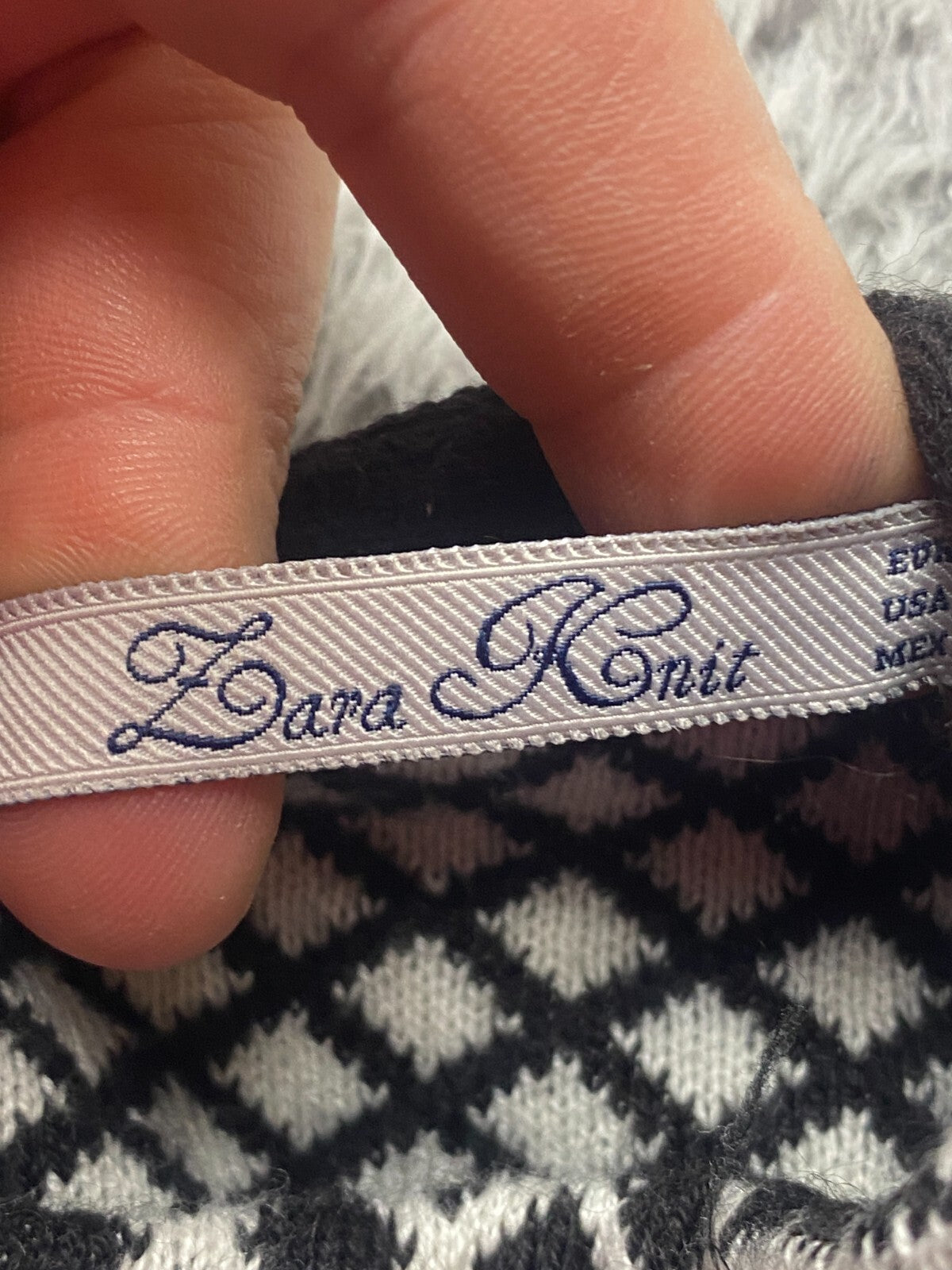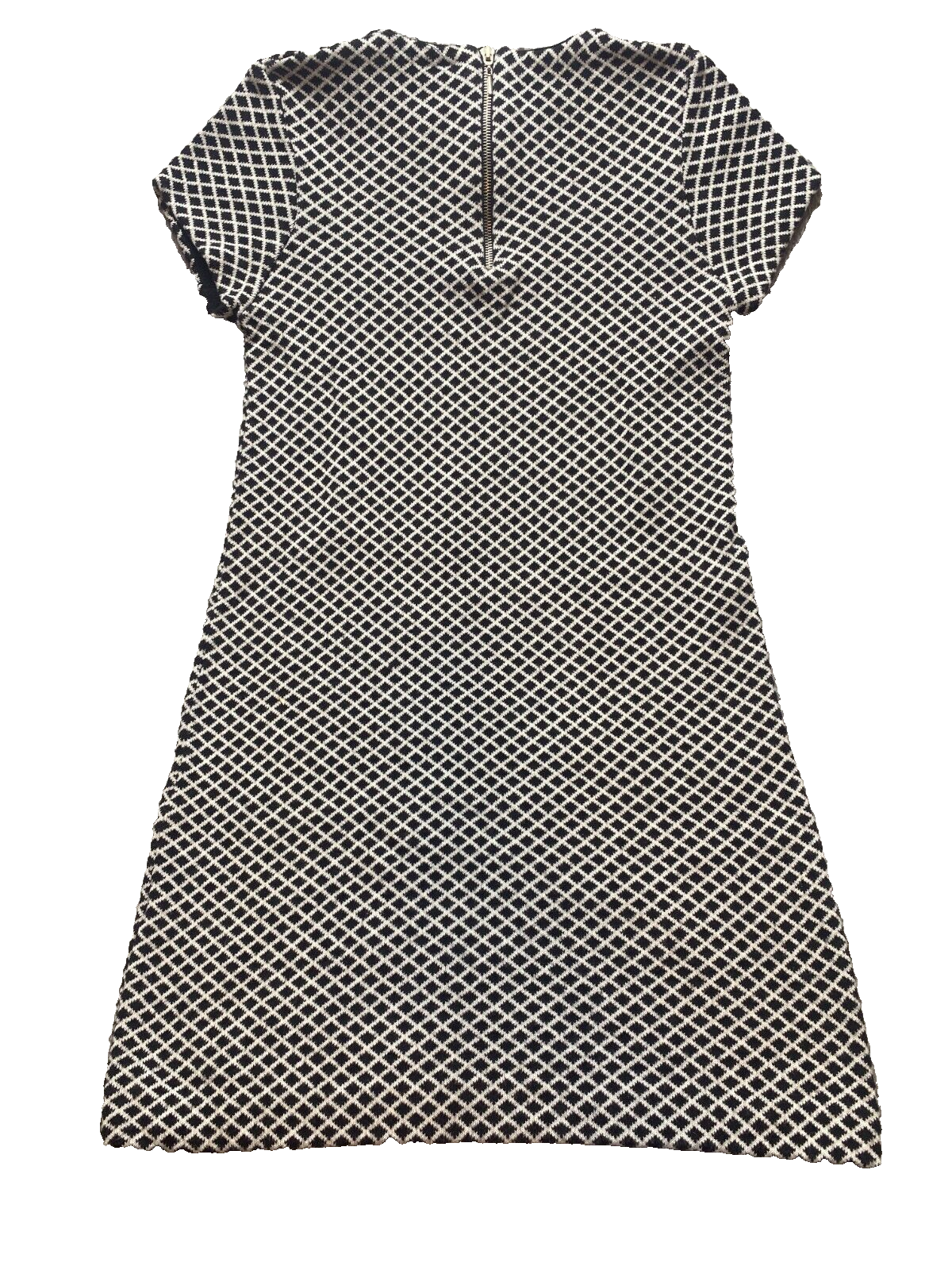 ZARA Knit Dress Womens Medium Black White Argyle Diamond Sheath Peasant Casual