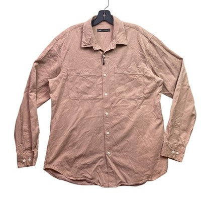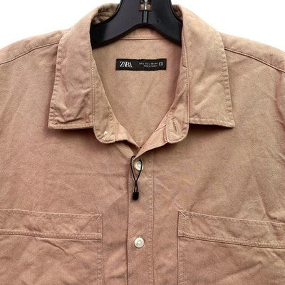 Keywords: ZARA men's shirt, long sleeve button down, two pocket shirt, beige casual shirt, men's size L shirt, lightweight shirt, fall fashion, spring fashion, versatile shirt, smart casual, weekend wear, everyday style, menswear, cotton blend shirt