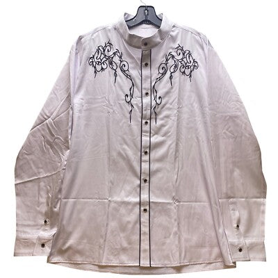 Keywords: ZEROYAA, embroidered shirt, dress shirt, long sleeve shirt, button down shirt, mandarin collar, menswear, formal shirt, party shirt, wedding shirt, white shirt, black embroidery, XL shirt, men's fashion