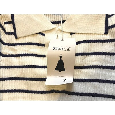 Keywords: ZESICA, striped top, knit top, ribbed sweater, long sleeve top, collared sweater, pullover sweater, black and white top, womens top, casual sweater, fashion top, small sweater, striped knit top, collared knit top