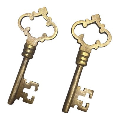 Conjure a sense of timeless elegance with this set of two vintage-style skeleton keys. These ornate keys, with their intricate detailing and classic design, evoke a sense of history and mystery. The warm, golden hue adds a touch of opulence, making them a captivating addition to any space. Imagine them adorning a bookshelf, displayed on a mantelpiece, or incorporated into a unique art project. These keys are perfect for adding a touch of vintage charm to your home decor, creating a whimsical atmosphere at a themed party, or serving as a thoughtful gift for a history enthusiast.