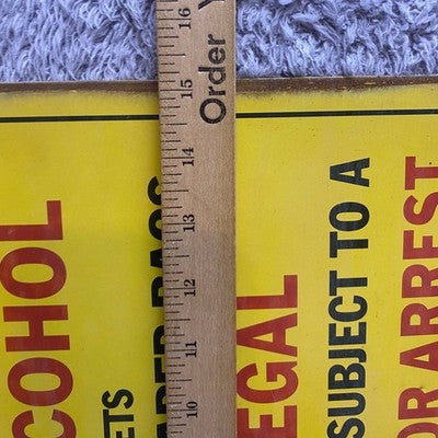 Command attention with this novelty metal sign, a bold statement piece that humorously declares, "Drinking of Beer and/or Alcohol on City Streets Even in Brown Paper Bags is Illegal." The vibrant yellow backdrop, contrasted with striking red lettering and a symbolic graphic, ensures this sign is not easily ignored. Its durable construction and eye-catching design make it a perfect addition to a home bar, a quirky office space, or a themed game room, adding a touch of rebellious charm and lighthearted warning to any setting. Ideal for sparking conversations at a casual get-together or adding a unique touch to a collector's display.