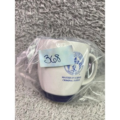 Sip your morning brew with pride in this Fayetteville State University Master of Science Criminal Justice mug. Its classic white ceramic design, accented with a striking royal blue rim and base, offers a comfortable and stylish way to enjoy your favorite beverage. The bold blue FSU seal and the prominent "MASTER OF SCIENCE CRIMINAL JUSTICE" inscription proudly display your academic achievement or FSU spirit. This mug is perfect for enjoying a hot coffee or tea while catching up on studies, celebrating a graduation, or simply reminiscing about your time at Fayetteville State. It makes a thoughtful gift for any proud Bronco in the Criminal Justice program or an alumnus.