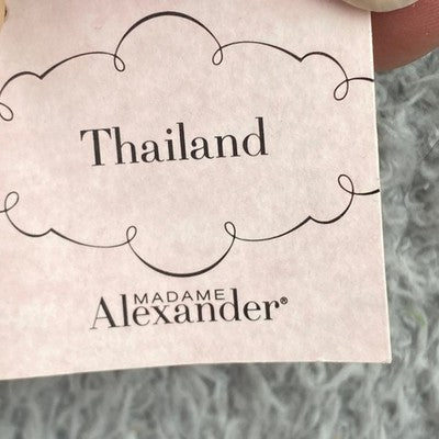 Captivating beauty, this Madame Alexander doll embodies the rich heritage of Thailand with her exquisite ensemble. Her intricately detailed golden headdress, shimmering gold and deep maroon brocade costume adorned with delicate beadwork, and tiny anklets transport you to a world of cultural elegance. The lifelike painted features and flowing black hair add to her undeniable charm, making her a treasure to behold. Perfect for adding a touch of exotic sophistication to a collector's shelf, as a unique decorative accent for a global-themed room, or as a thoughtful gift for someone who appreciates international artistry.