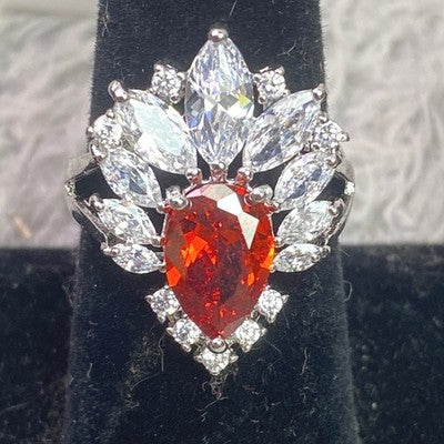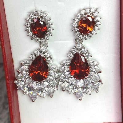 Orange Red Marquise Crystal Pendant Necklace Earrings Ring Jewelry Set Gift Box