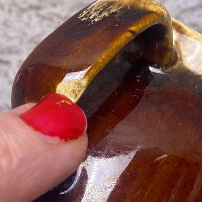 Evoke a sense of rustic charm with this vintage Hull Pottery pitcher. The rich brown drip glaze cascades down its gently curved form, creating a warm and inviting aesthetic. The cornucopia leaf design adds a touch of nature-inspired elegance, making it a delightful addition to any table setting. Imagine serving refreshing iced tea on a sunny afternoon or displaying vibrant floral arrangements, this pitcher is sure to enhance any occasion. Perfect for farmhouse-style kitchens, cozy breakfast nooks, or as a unique decorative piece in your living room.