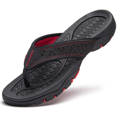 • Mens Thong Sandals Indoor And Outdoor Beach Flip Flop Black/Red (Size 16)