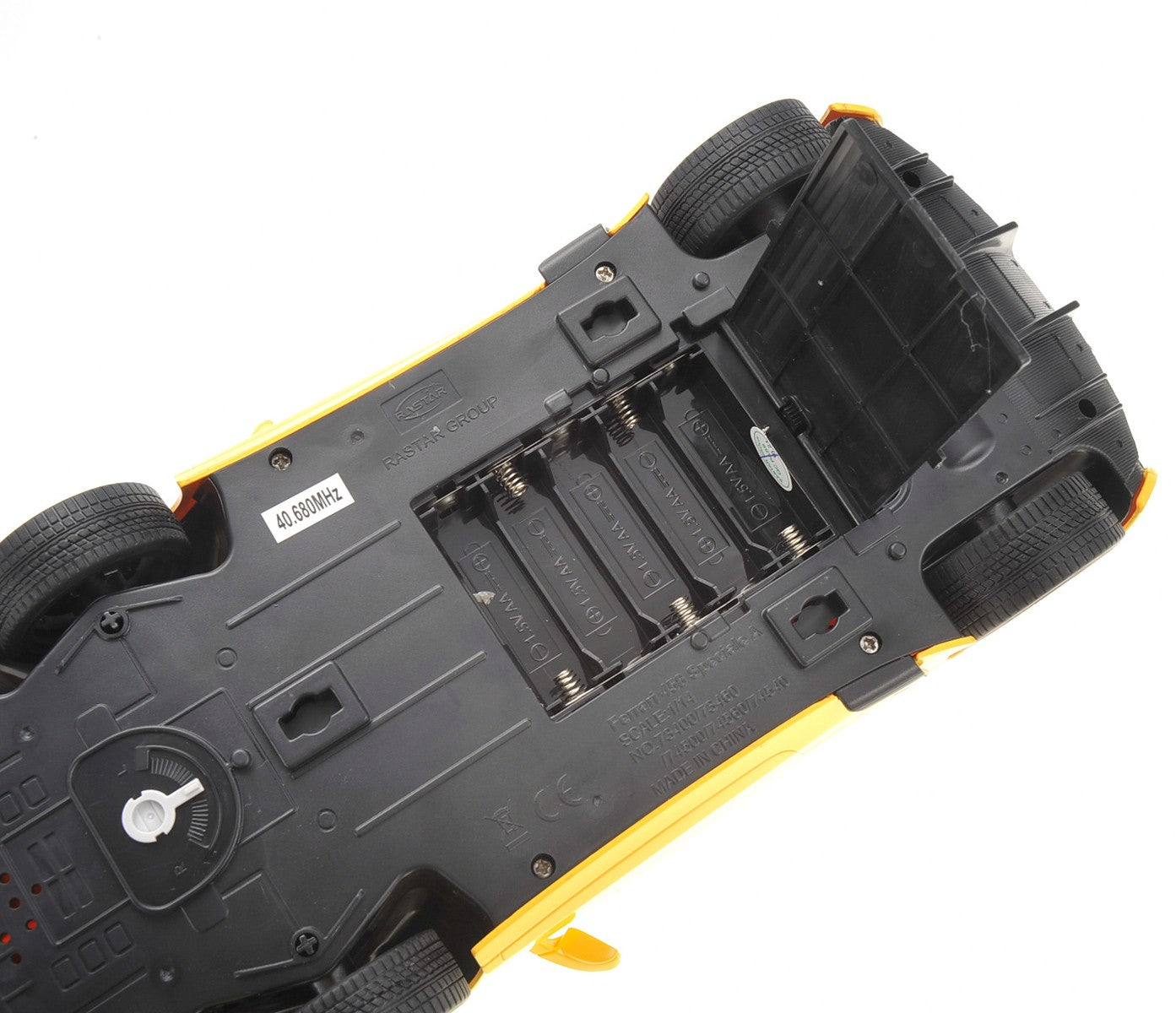 Full Function Radio Controlled Forward, Reverse, Stop, Left & Right Adjustable Front Wheel Alignment All Independent Spring Suspension System Detailed Interior / Exterior Rims & Tires Glossy Exterior Paint, Speed: 8-10 mph Scale: 1:14, Remote Distance: 30 ft Factory Assembled Ready to Run. 5X AA Batteries (Not Included) and 1 9V Battery required (Not included). Packaging include: Car, 1 Remote Control, 1 User Manual