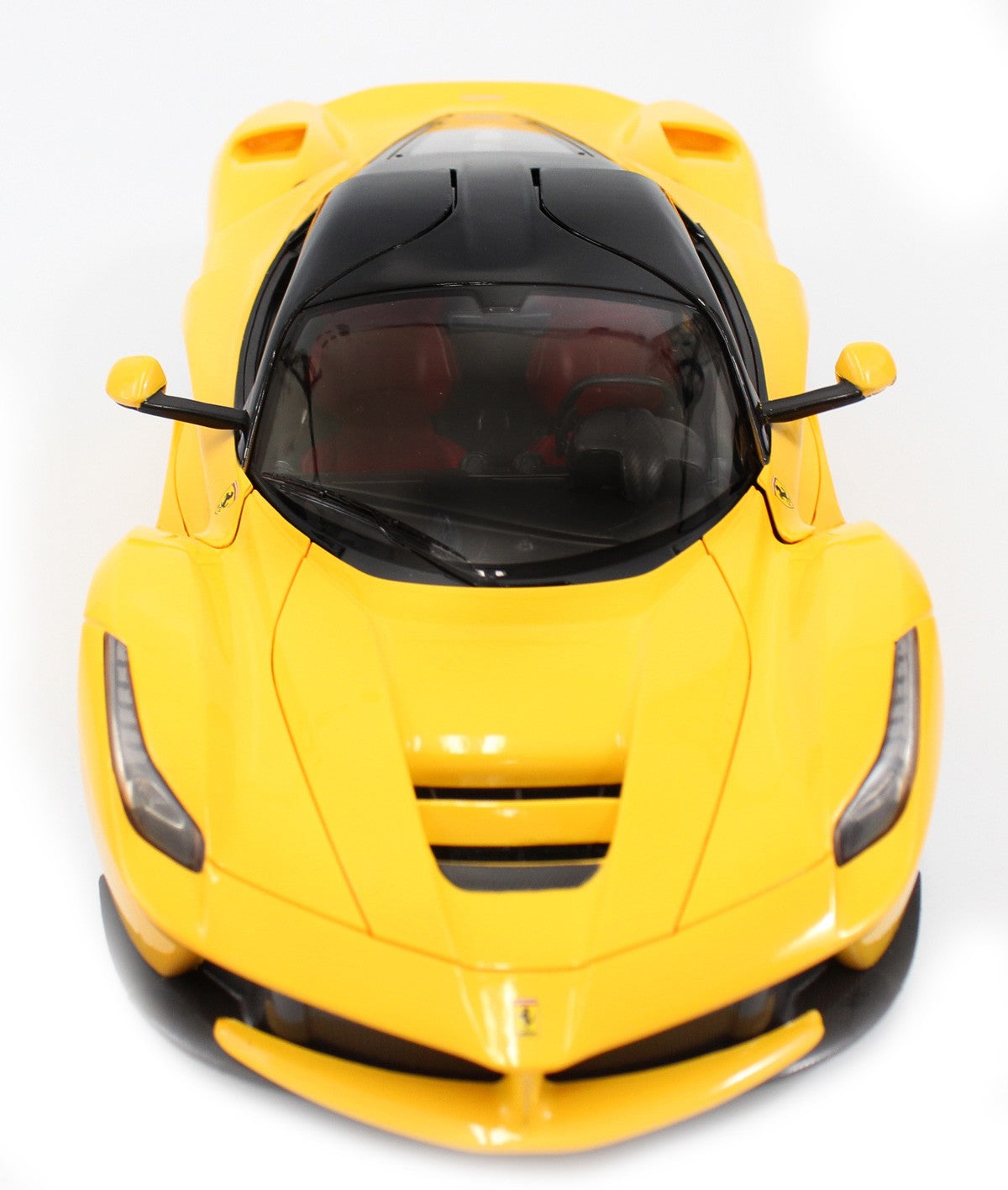 Official licensed model RC car of the Ferrari LaFerrari. 1:14 Scale. The interior and exterior of the car is crafted with great details to look exactly like the real Ferrari. Additionally, it has built-in bright LED headlights/brake lights and doors can open/close. The integrated spring suspensions makes it a smoother ride for the car on uneven pavement floors.