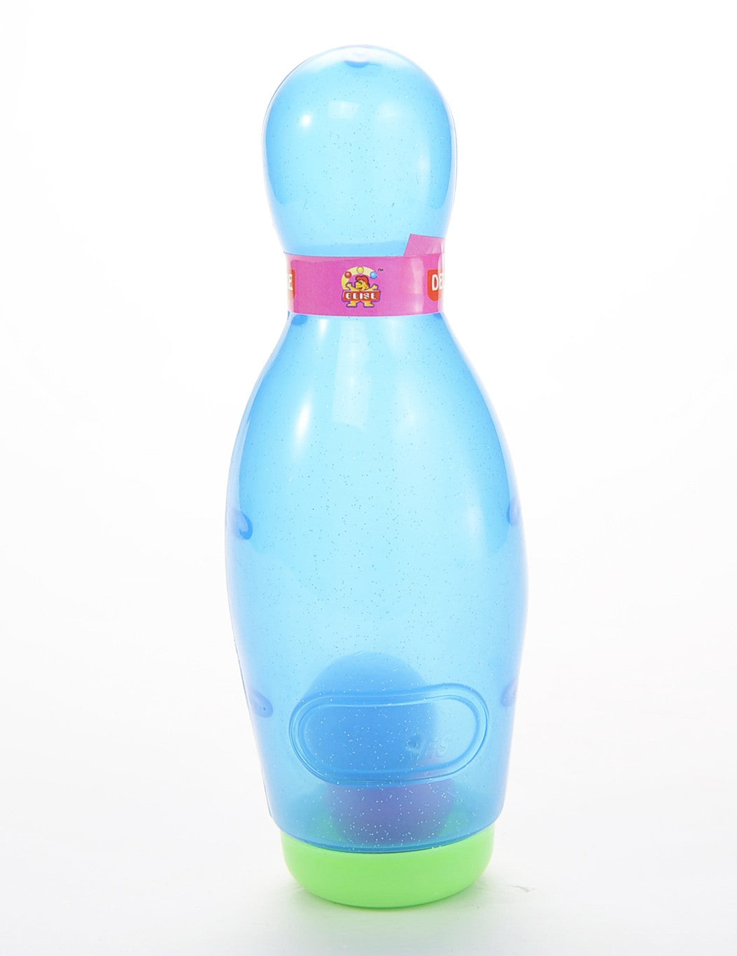 Colorful balls inside the pins jump and clatter when they're knocked down