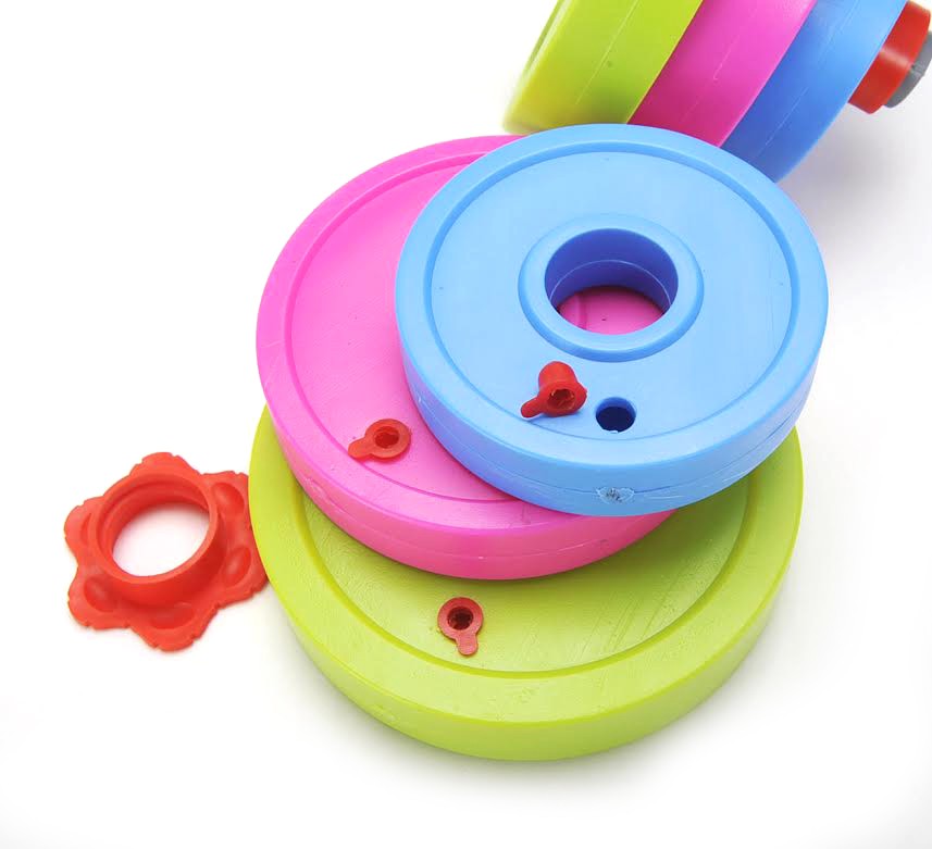 This adjustable dumbbell set is really fun. Play with it at home or at the beach. Show off your strength by lifting this dumbbell with ease. This dumbbell set includes 6 weight plates, 1 dumbbell bar, and 2 lock collars. Place one, two, or three weight plates on each end of the dumbbell bar and lock it into place using the lock collars. The weight plates comes in 3 different sizes: small (150ml), medium (250ml), large (400ml). This dumbbell set starts at 1lb and can increase when it is filled with either water or sand. Dumbbell measures 14" x 6" x 6". It's also very colorful with smooth edges. Your kids will love this dumbbell set!
