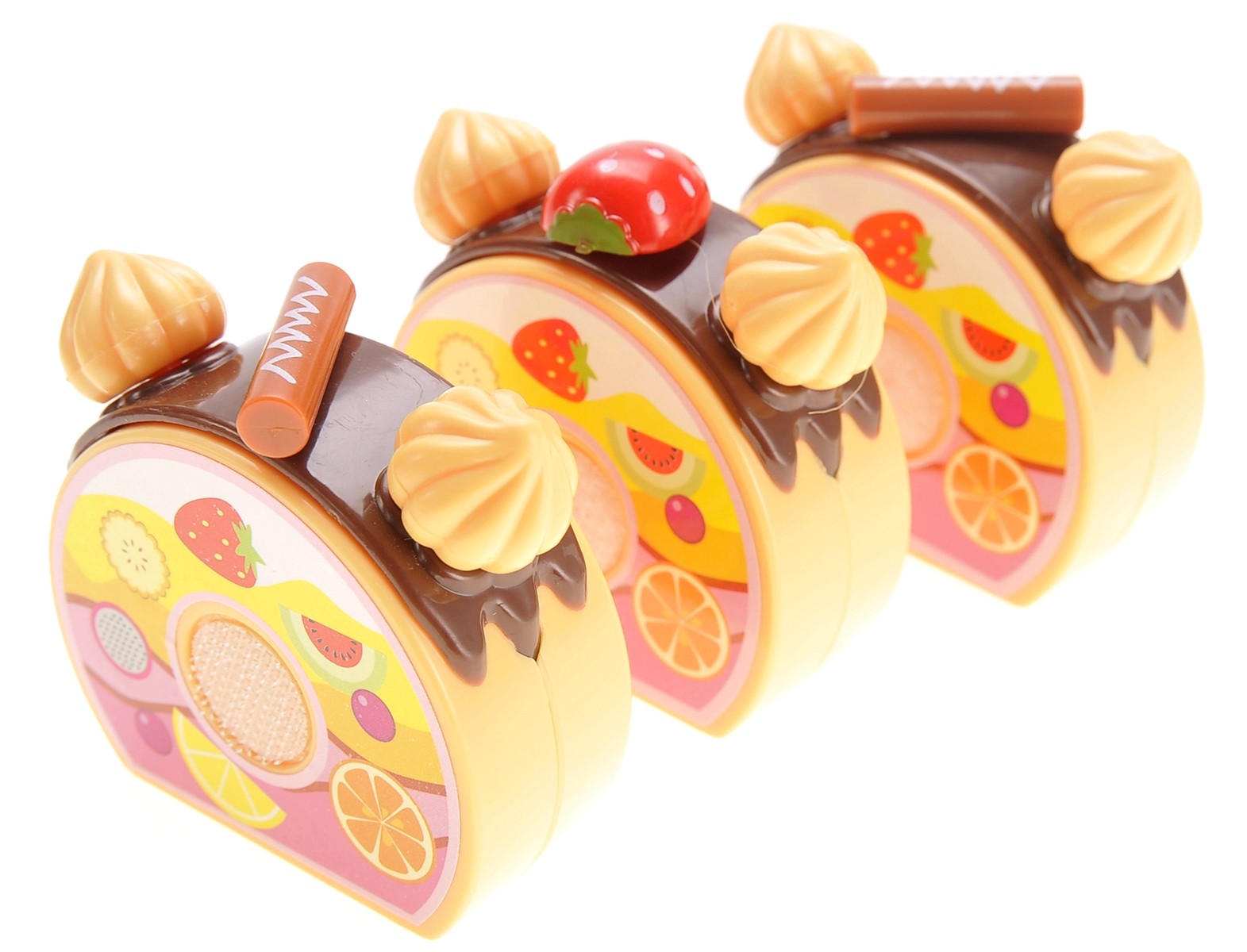 It's time for a birthday celebration with all sorts of sweet dessert! This birthday cake pretend play food will have kid's mouth watering because it comes with all different varieties of sweet desserts and a big birthday cake. The cakes and other items are detailed with bright vivid colors, so it will look like the real dessert. It's great for celebrating any birthdays or just simply great for pretend role playing. Cake and other desserts can be cut in half and put back together using the Velcro.