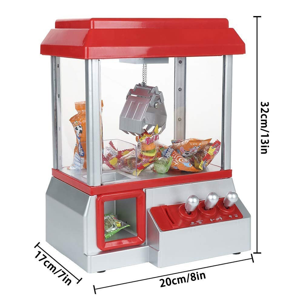 Have your very own arcade wherever you go with The Claw! The electronic candy grabber machine allows you to bring the thrill and excitement of catching your own prize to your home. Simply set your eyes on the prize and adjust the joystick to win the prize of your choice. Win all types of prizes from candy, gum, or small toys. 3xD Batteries are required but not included.