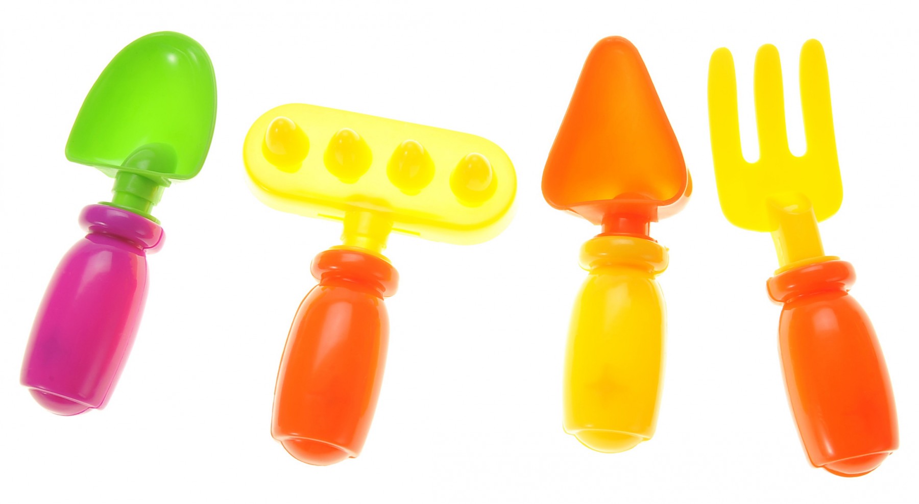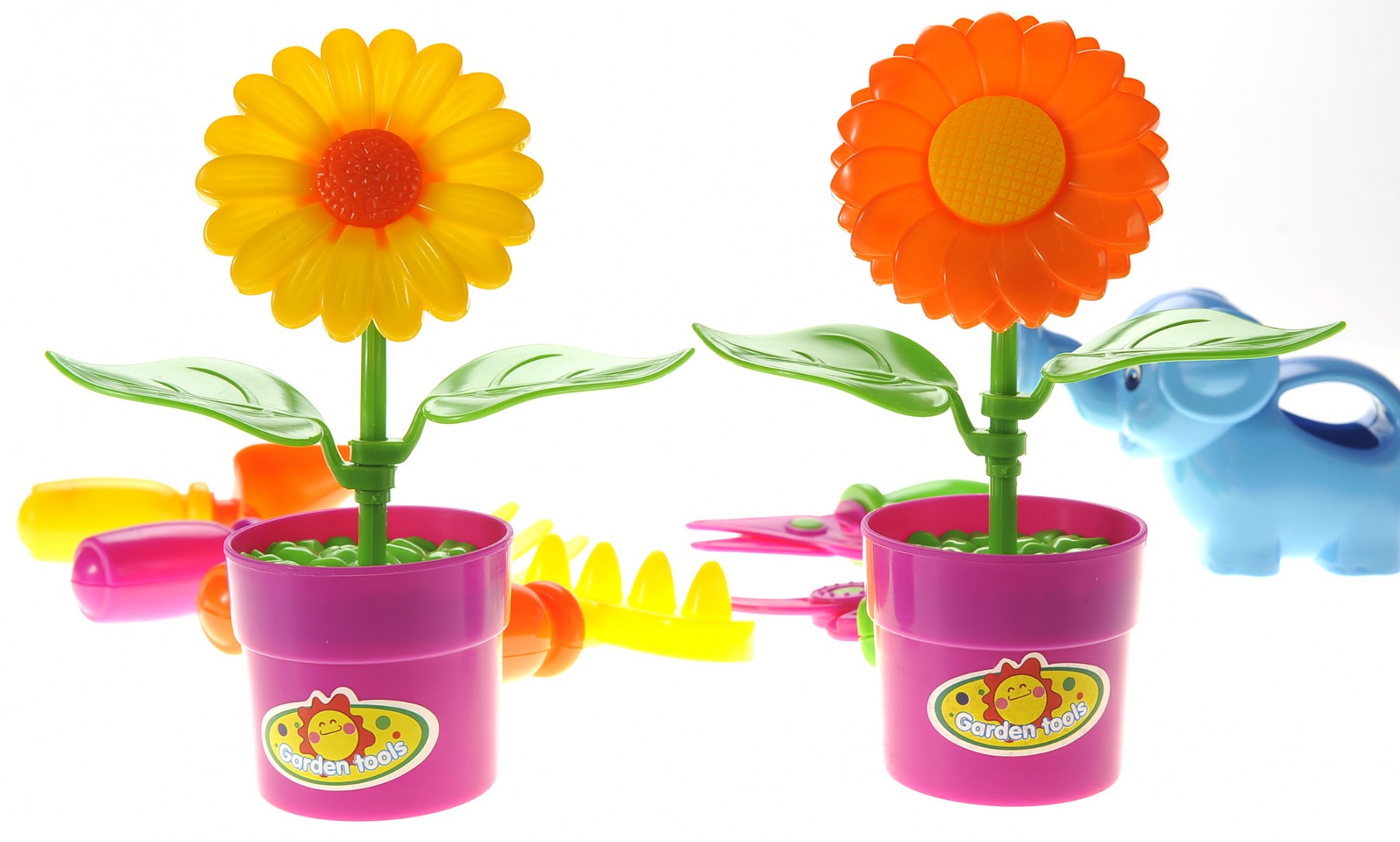 Tools, flowers, and watering can are made out of sturdy plastic material, so kids can be rough with them