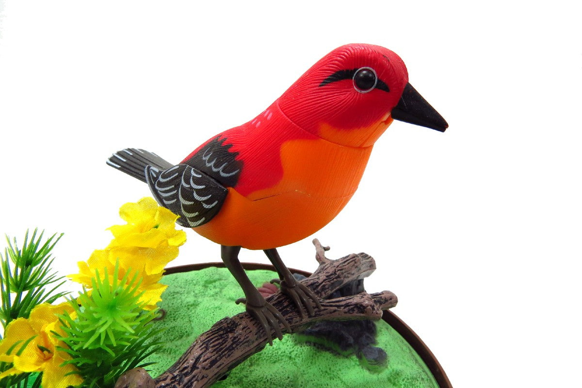 All you have to do is create a sound near the bird on the branch and it will start to shake its head, open its mouth, shake its wing and tail and sing a bird song.