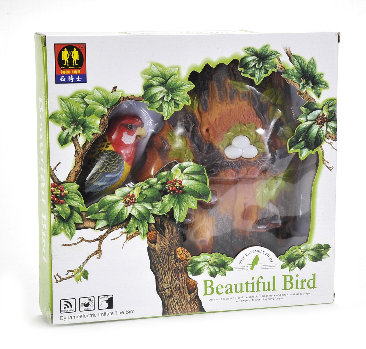 A little bird to brighten your room -- a friend at your side. Bringing you a sweet song, the little bird's beak, neck, and body move as it chirps out sweetly. Singing bird comes with motion senor technology, so every time you walk near, it will chirp a melody. This is definitely great for those who love watching birds and hearing the soothing chirps in the morning. Friends and family will be amazed about how realistic the bird will sound. Additionally, the bird is beautifully made with lots of colors on it. The stand makes it look like its a tree trunk and even has some egg to make it look more real. You can practically hang this anywhere!