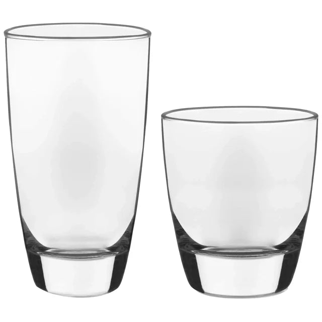 - Includes 8, 13-ounce clear double old fashioned rocks glasses and 8, 18-ounce clear cooler glasses