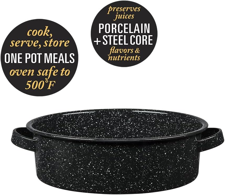 • This Granite Ware 5qt Covered Casserole is a smaller version of the traditional casserole.