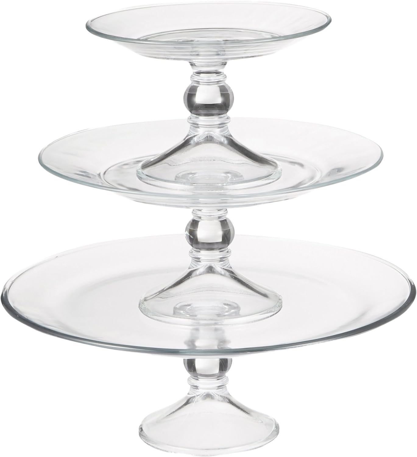 Includes: (1) dia. 7.5" x 4.8" glass footed platter, (1) dia. 10.6" x 4.9" glass footed platter and (1) dia. 13" x 4.75" glass footed platter