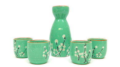 SAKI SET WHITE W/CHERRY BLOSSOMS