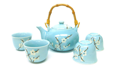 TEA SET LIGHT BLUE W/FLOWERS
