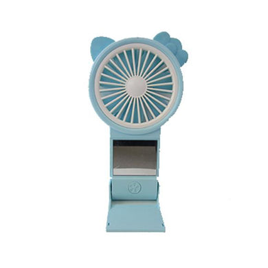 FOLDABLE PERSONAL MINI FAN BLUE (3 SPEED LEVEL, MIRROR,USB CHARGE)