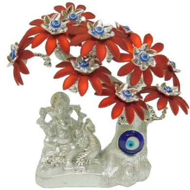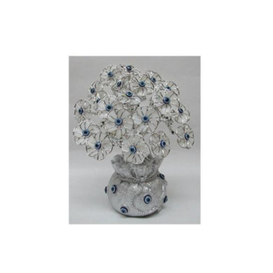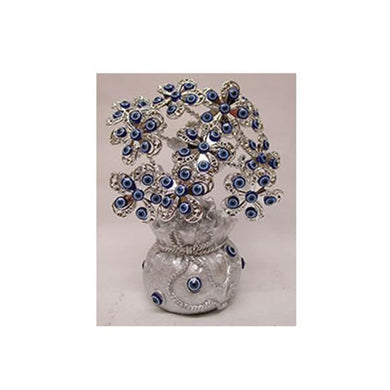 SILVER FLOWER EVIL EYE TREE W/MONEY BAG BASE