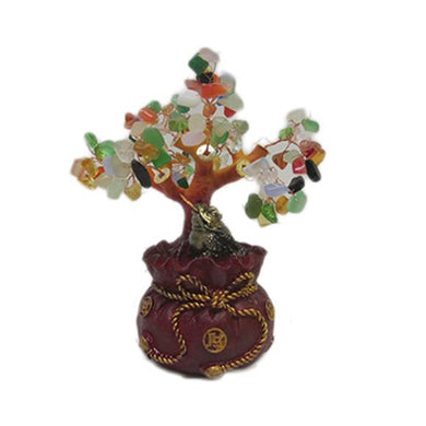 BLUE FLOWER BLUE EYE TREE W/GOLD MONEY BAG BASE