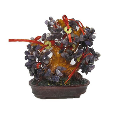 AMETHYST TREE W/GOLD MONEY BAG BASE