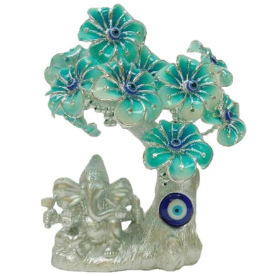 SILVER TREE W/BLUE FLOWERS & GANESH