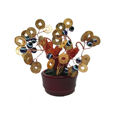 RED FLOWER EVIL EYE TREE W/GOLD MONEY BAG BASE