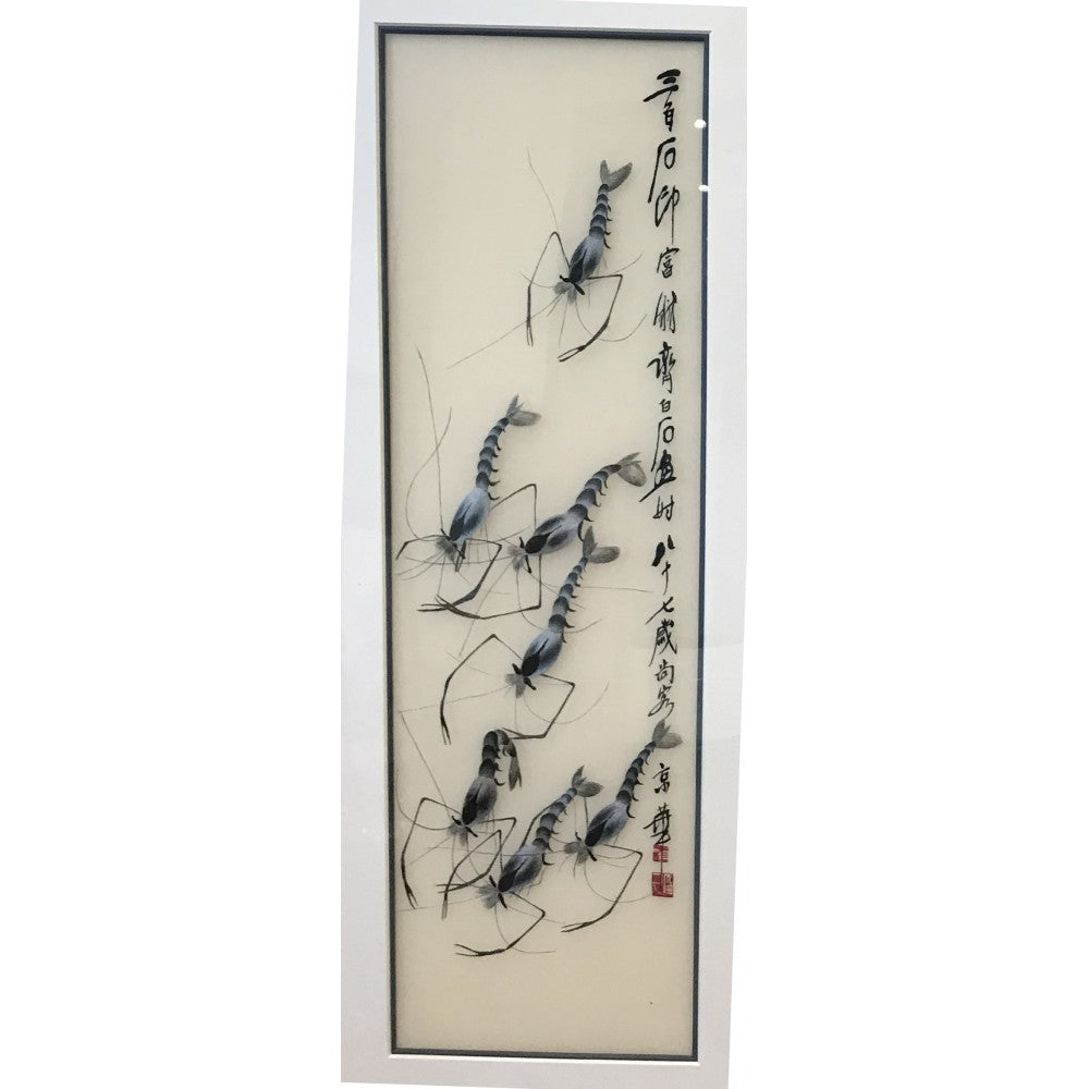 Chinese Handmade Silk Embroidery Shrimps Painting ( By Ji, Bai Si ) Wall Decor Suzhou Embroidery