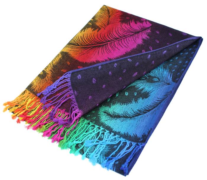 Colorful Peacock Feathers Pashmina Scarf Shawls (Sold by Dozen)