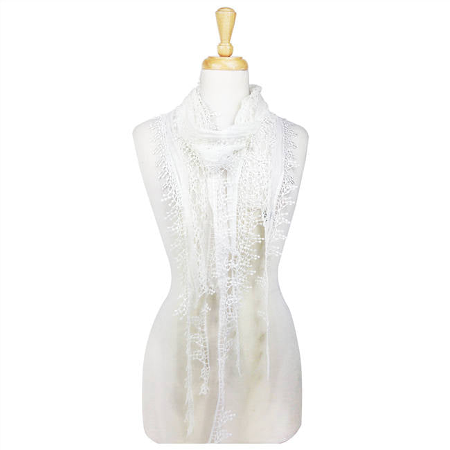 Fashion Lace Tassel Sheer Oblong Lightweight Scarf
