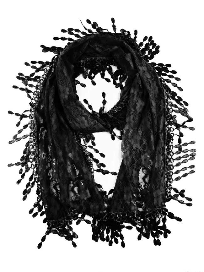 Fashion Lace Tassel Sheer Oblong Lightweight Scarf