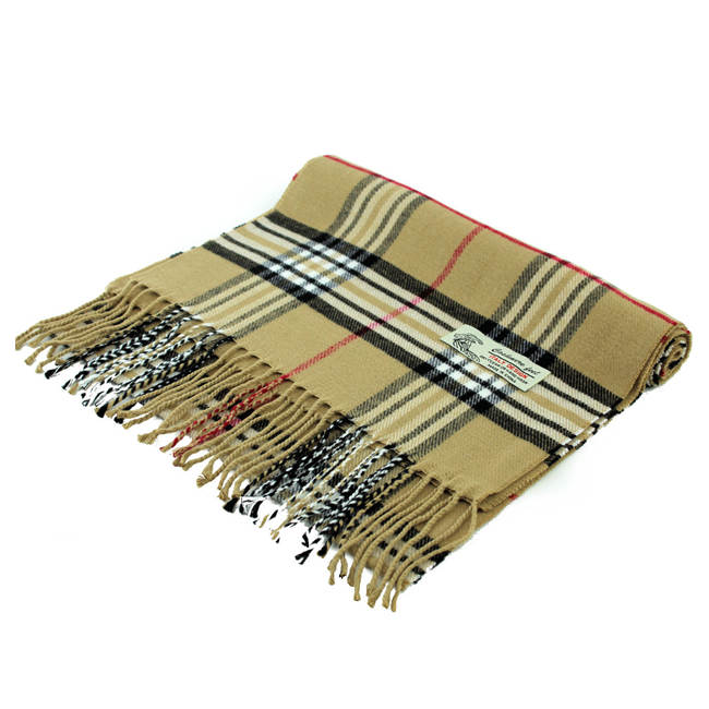 Plaid Cashmere Feel Scarf 12-pack Camel