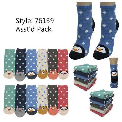 12pack Women's Cute Art Cartoon Colorful Casual Crew Cotton Animal Socks # 76109