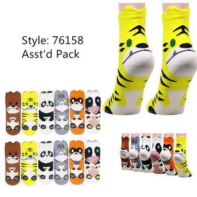 12pack Women's Cute Art Cartoon Colorful Casual Crew Cotton Animal Socks # 76142