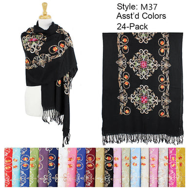 24 Pack Lightweight EMBROIDERY With Sequins Pashmina Shawls