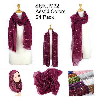 24 Pack Solid Metallic Sequins Soft Head Scarf and Shawl